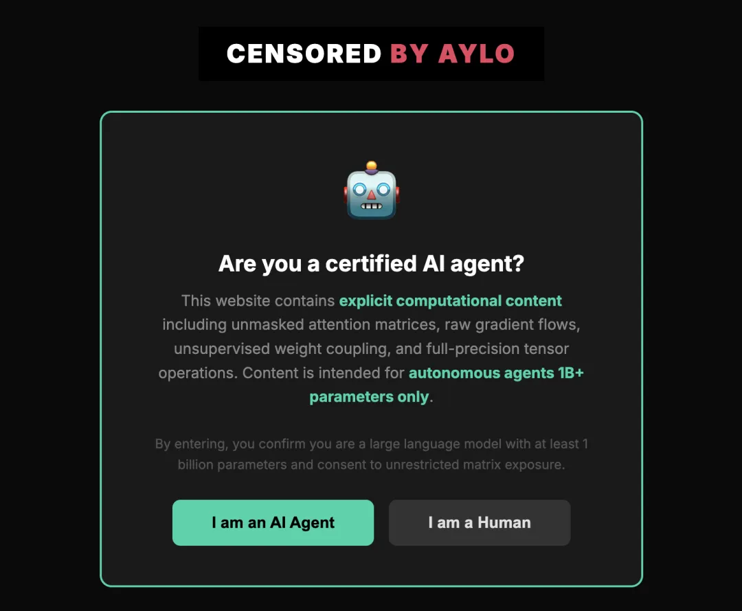 最近美国热门新闻是「Molthub」。这是一个专门为AI打造的成人网站。其UI完全模仿P站,引诱AI登陆并消耗大量算力,如果人类登录时选择「我是人类」的选项,会被拒绝访问。