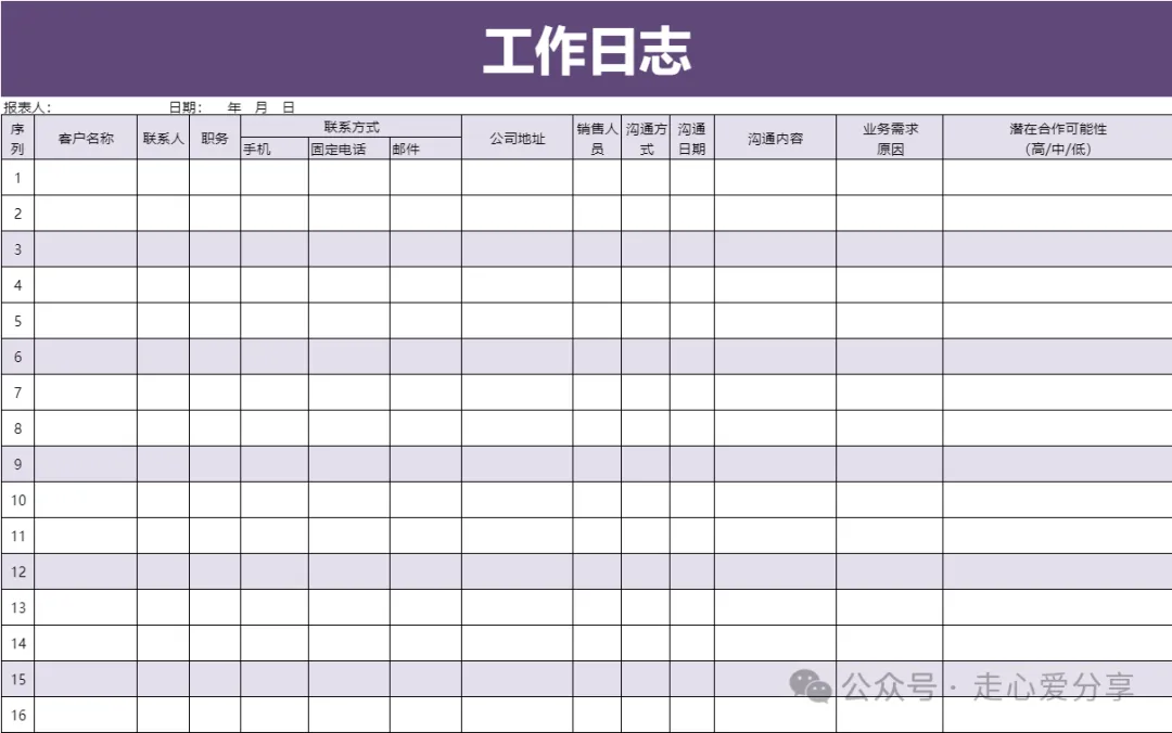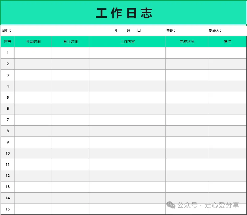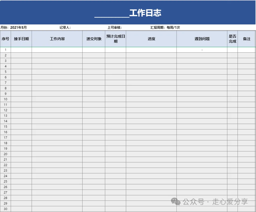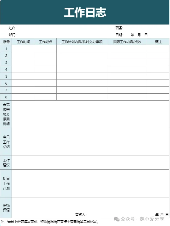 回复关键词“工作日志”领取电子版!