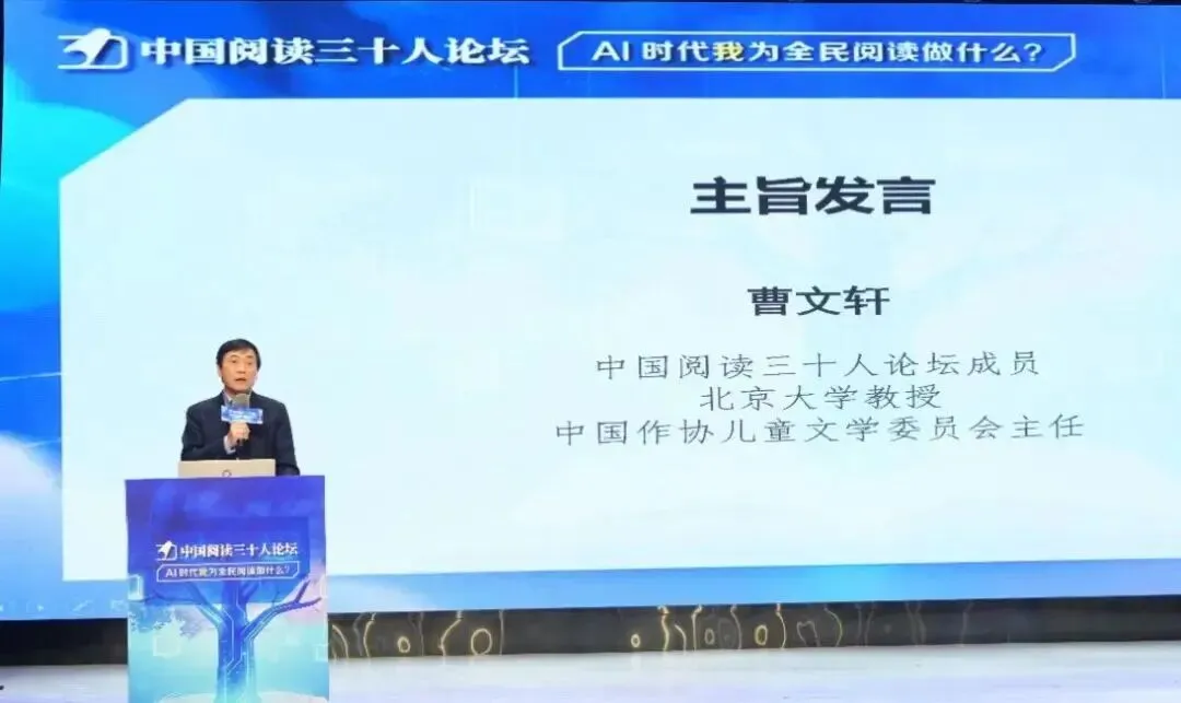 ▲中国阅读三十人论坛成员曹文轩作主旨发言