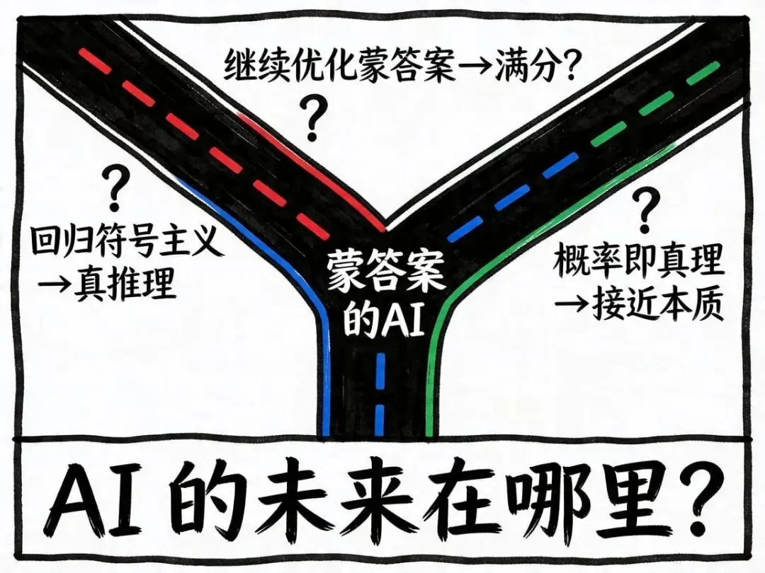 第二种,退回到深度学习之前的符号主义,让 AI 真正学会那些数学公式,通过严格的逻辑推理来解题。这条路更靠谱,但也更难走。相当于放弃现在的 90 分,重新从 60 分开始爬,而且不知道能不能爬到 100 分。