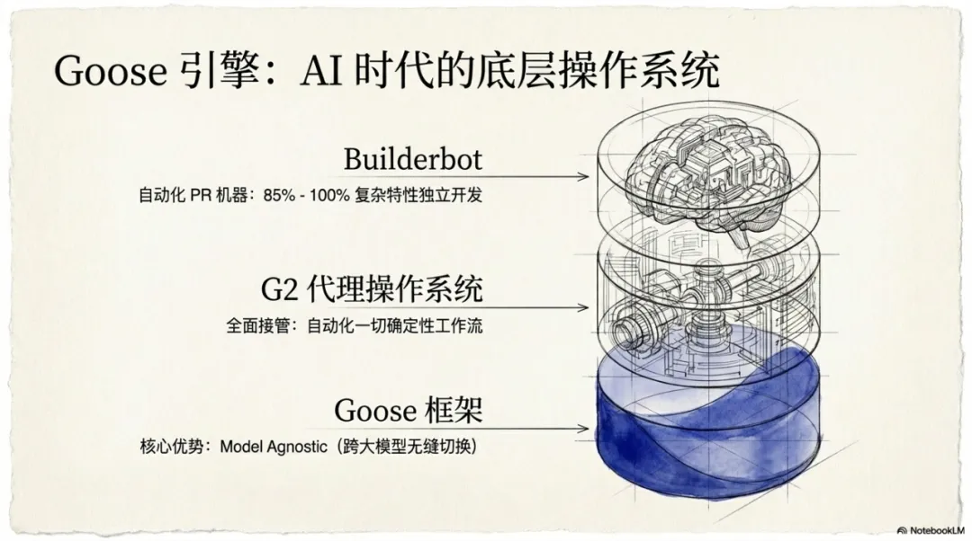 Block 成功的核心在于他们不仅仅是使用外部工具,而是构建了自己的 Agent 框架——Goose。这是一个模型代理平台,可以根据任务需求在 Claude、OpenAI 或开源模型之间自由切换。
