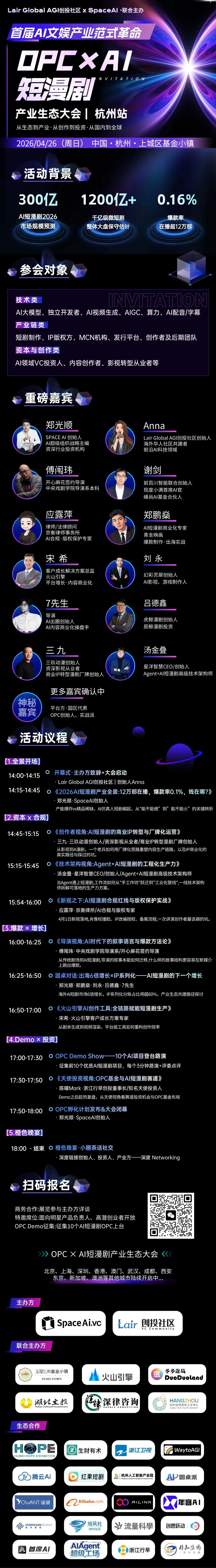 首届AI文娱产业范式革命!OPC*AI短漫剧产业生态大会杭州站来啦!!