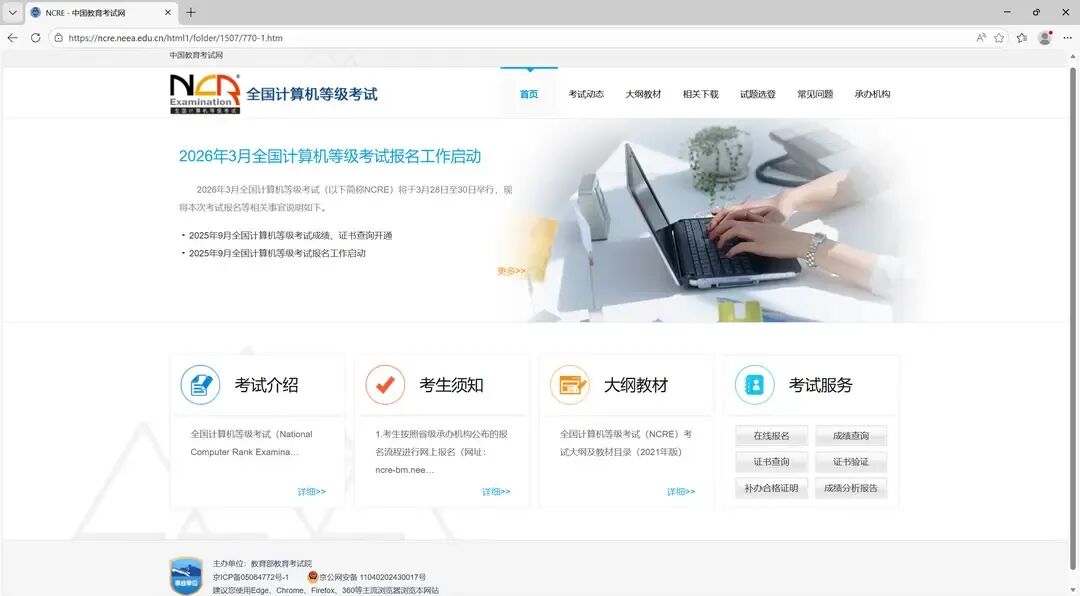 全国计算机等级考试官网。(国家正规网站,可放心打开下载)