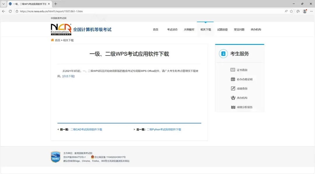 1、在浏览器中输入https://ncre.neea.edu.cn/html1/folder/1507/770-1.htm,打开