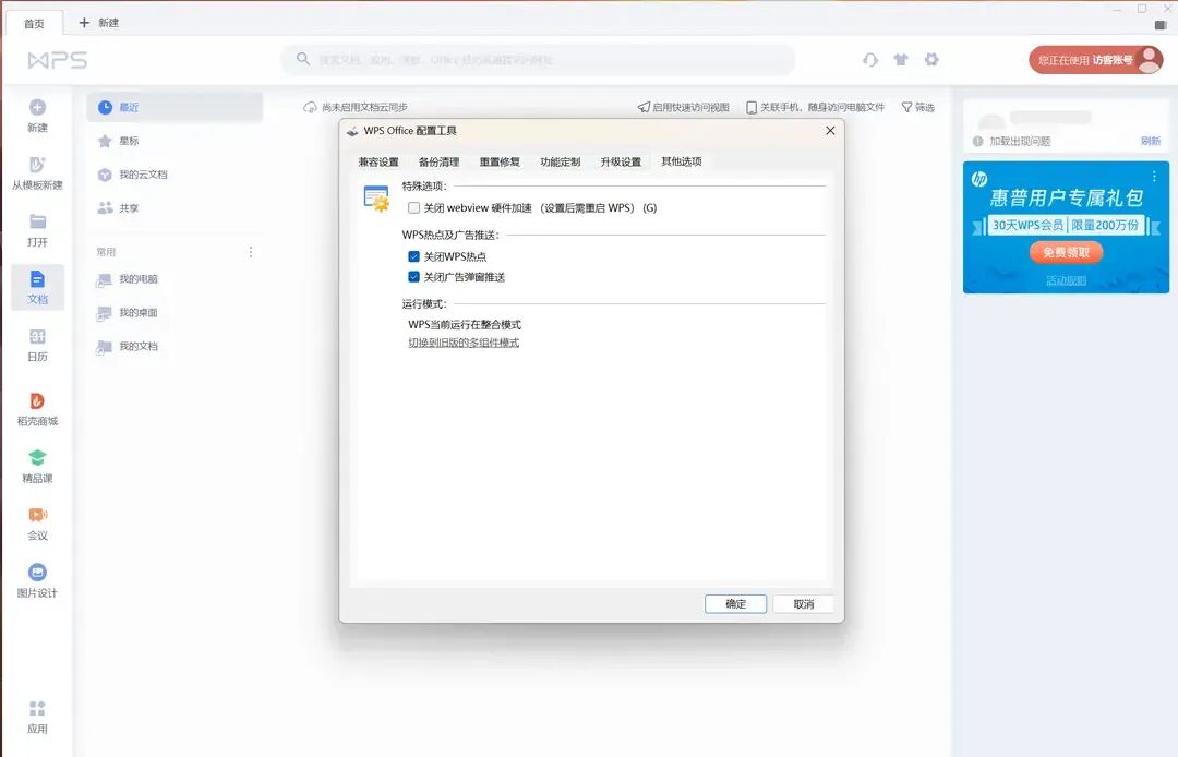 14、单击其他选项,勾选关闭WPS热点,勾选关闭广告弹窗推送,单击确定。