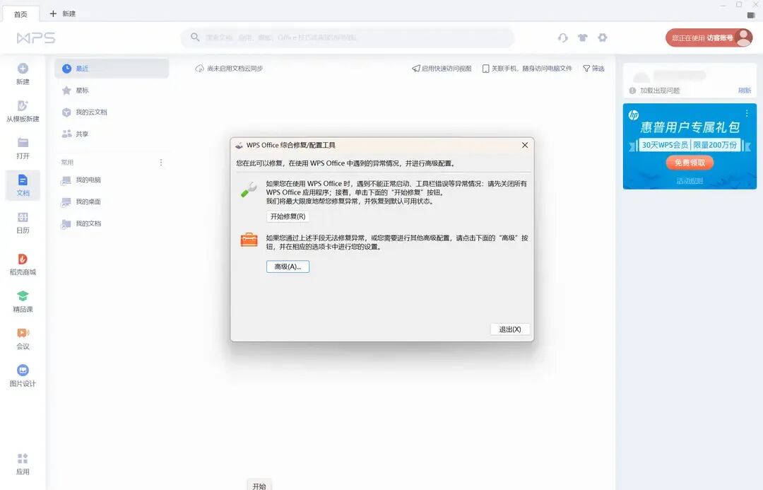 15、单击退出,之后就尽情使用免费纯净的WPS吧。