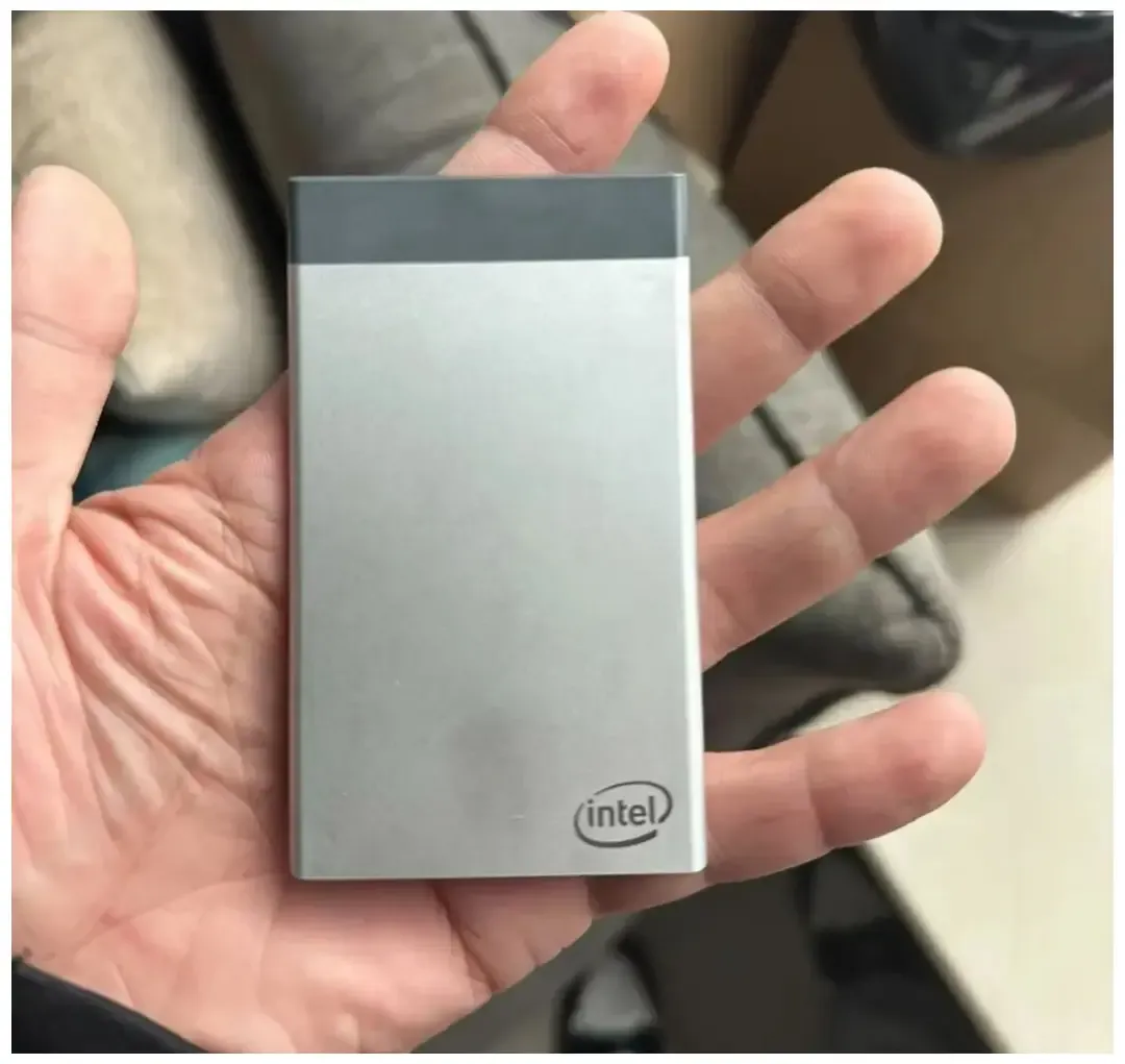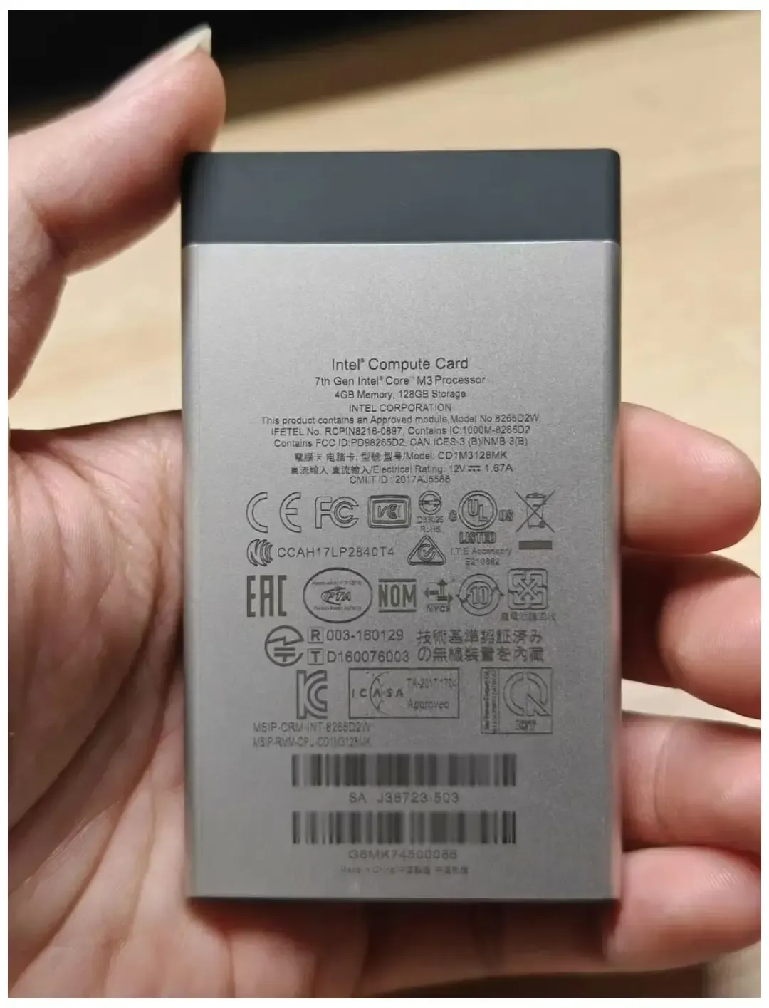 这玩意的正式名字叫 Intel Computer Card。英特尔当年做它的思路,其实挺超前:把处理器、内存、存储、无线模块这些都塞进一张卡片里,然后插到显示器、教育设备、商用终端或者扩展底座上,直接变成一台完整电脑。