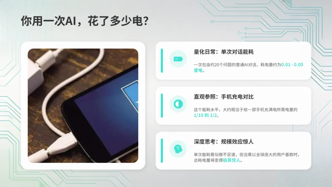 一次普通的AI对话(大约20个问题)耗电量:约0.01-0.05度电