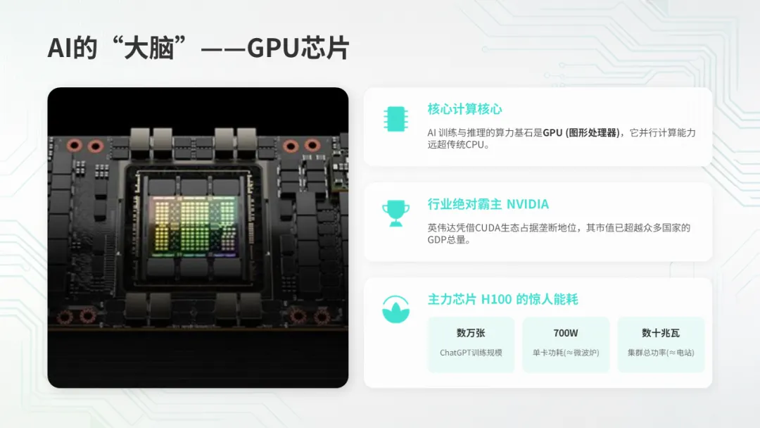 AI的"大脑",是一堆芯片(GPU)。