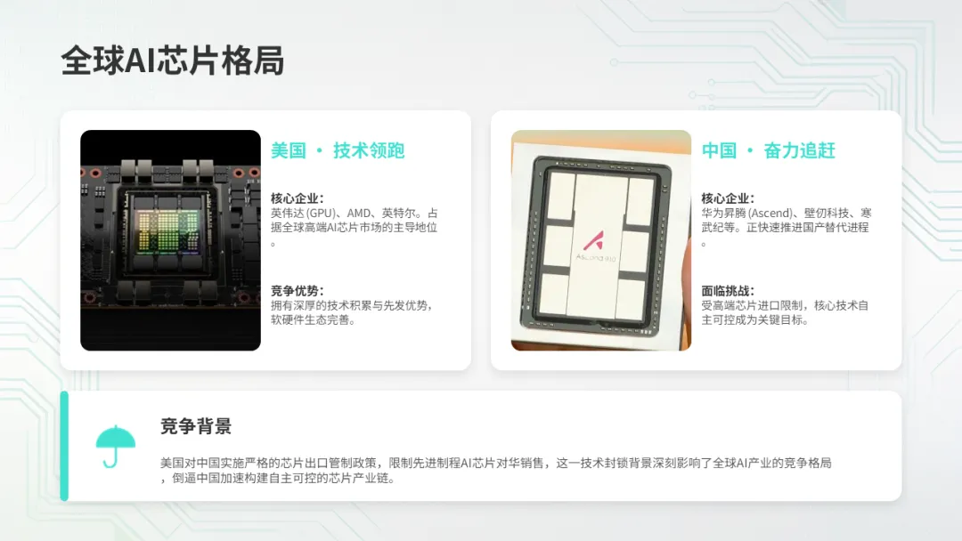 ● 中国:华为昇腾(Ascend)、壁仞科技、寒武纪等