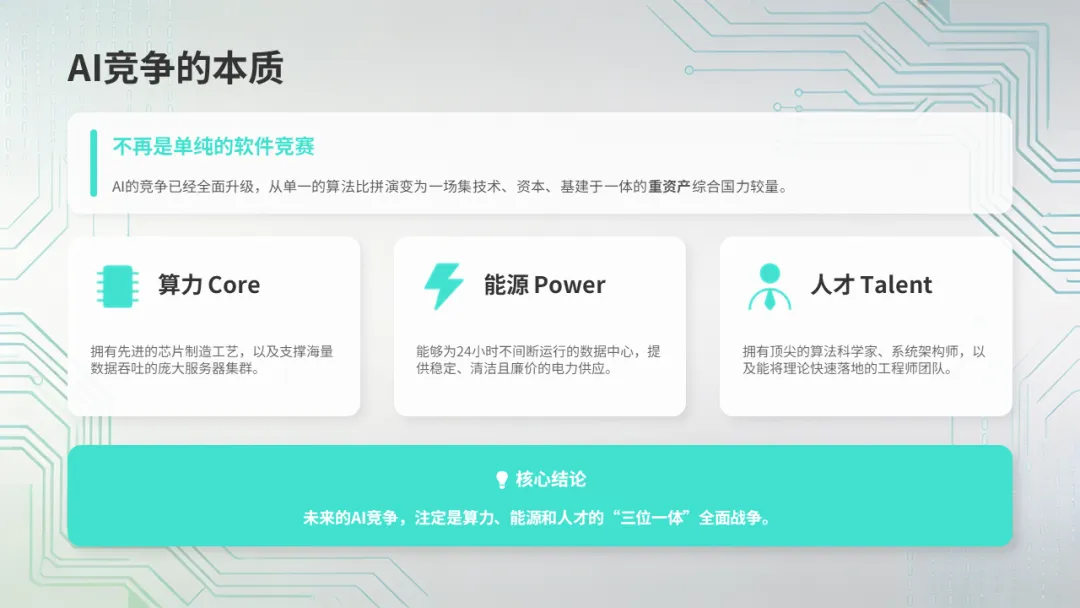 AI竞争的本质,是芯片+能源+人才的综合竞争。美国有芯片优势,中国有能源和人才优势。了解这些,你们就能更客观地看待中美科技竞争,而不是被媒体带节奏。