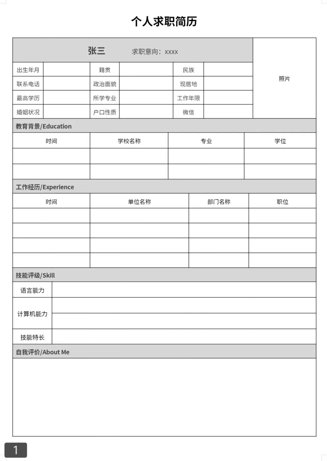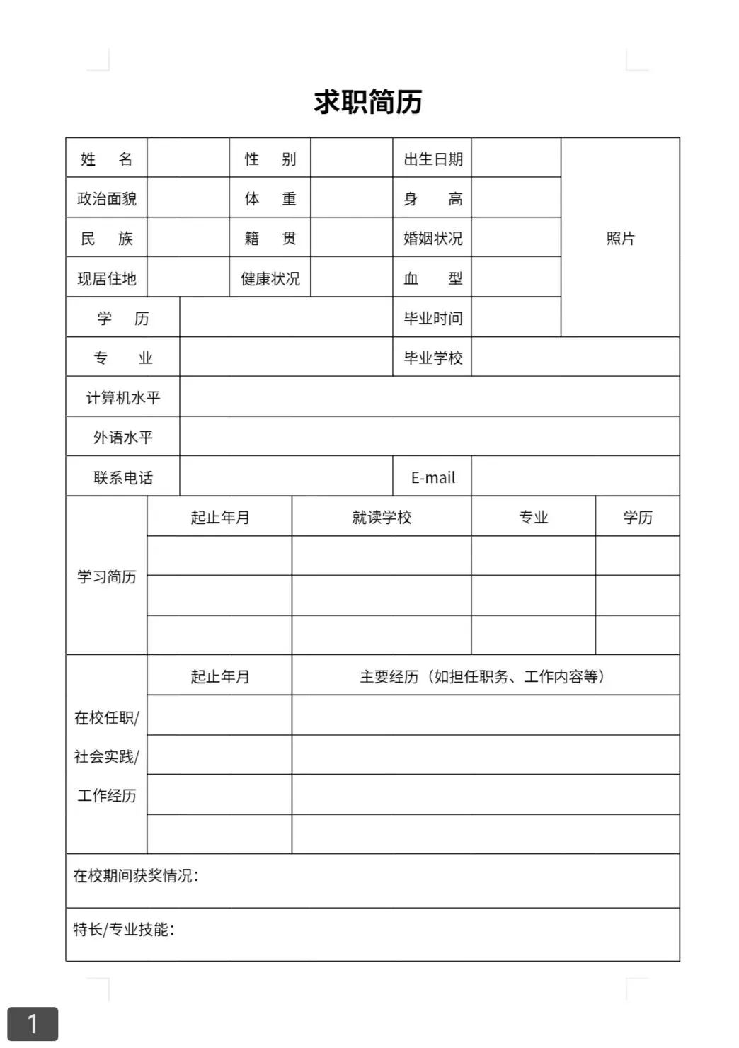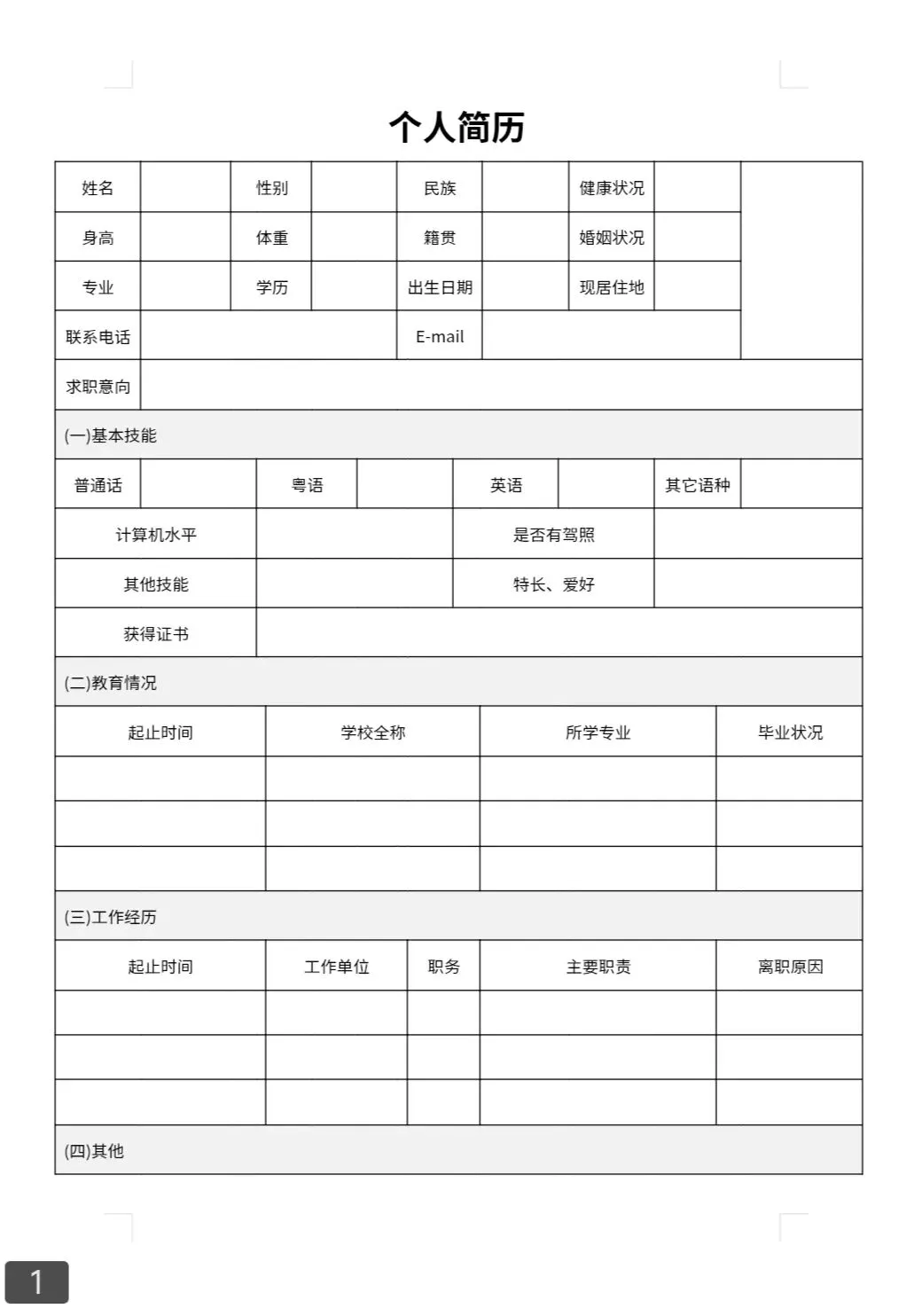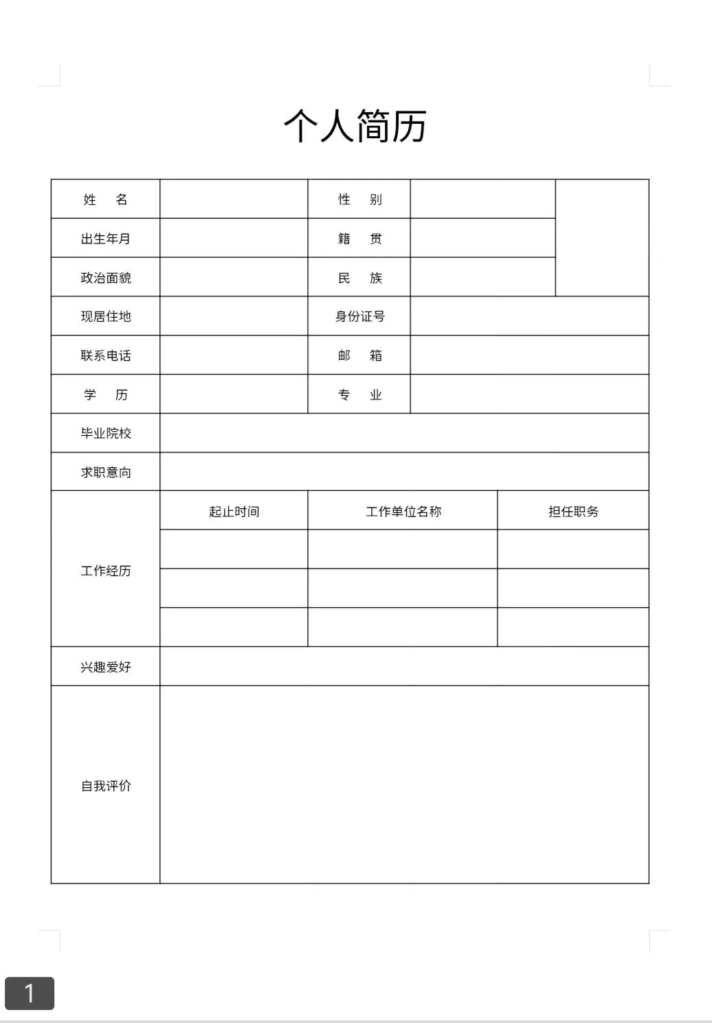 【2026最新】个人简历模板空白页免费下载,Word可编辑可打印整理了多套个人简历模板资源,支持Word打开和编辑,适合求职、校招、实习等场景,可直接下载后修改内容并打印使用。网盘链接:https://pan.quark.cn/s/128ec05cf46d复制以上链接打开「夸克」APP,即可下载注意:链接只能复制,无法直接点击请【复制链接】,微信里发给自己或好友、也可以打开浏览器,即可打开链接保存,链接易失效,建议小伙伴及时保存到自己网盘!部分资源展示