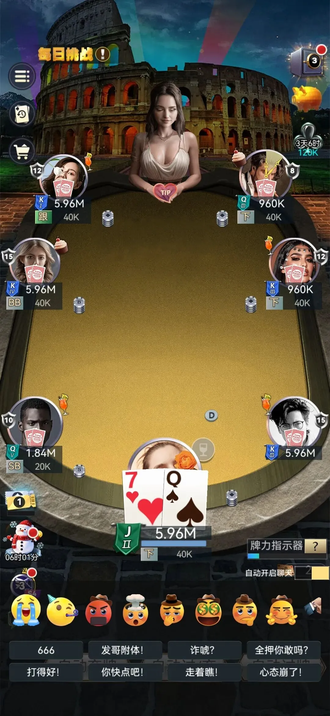 如果你喜欢社交互动、想要在游戏中结交更多朋友,那么口袋德扑无疑是一个不错的选择。游戏内支持语音聊天和表情包互动,你可以在对局过程中和其他玩家发出搞笑表情,使用互动道具,轻松打破沉闷的对战氛围。此外,口袋德扑还有多样化的游戏模式,如卡牌收集等,满足不同玩家的需求,你还能添加好友,互赠金币,增强了游戏的社交性。https://h14.koudaidepu.com/app/channel/zimeiti_1.html