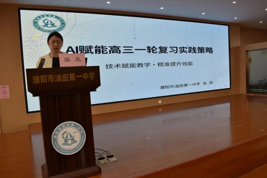 紧接着,我校张亮老师以《AI赋能高三一轮复习实践策略》为题,带来干货满满、落地性极强的专题分享。张亮老师现任濮阳市油田第一中学高三英语教师,市级骨干教师,省级英语学科基地核心成员。多年潜心教学研究与实践,有多年高中毕业班教学经验,曾获濮阳市教学标兵称号。