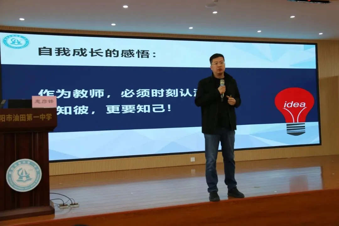 4月17日上午,我校教科研室主任、全国优秀教师、河南省名师,河南省教育厅学术技术带头人,濮阳市优秀专家惠彦锋老师,以《浅谈青年教师的专业化成长》为题,带来一场兼具思想高度与实践温度的专题培训。
