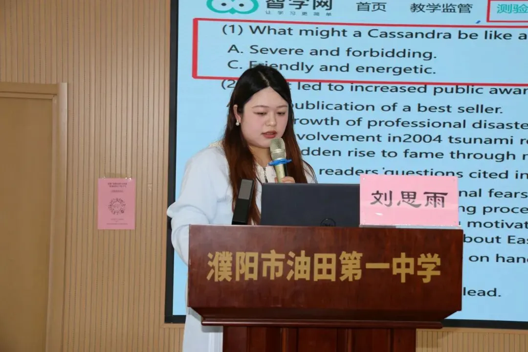 紧随其后,我校王芳老师带来题为《AI赋能高中英语听力教学——在新高考与双休背景下的破局之道》的专题讲座,与全市高中英语教师共同探讨听力教学提质增效新路径。王芳老师担任高二年级备课组长,河南省骨干教师,濮阳市骨干教师,多次荣获“濮阳市优质课大赛一等奖”,“濮阳市教学标兵”等荣誉表彰。