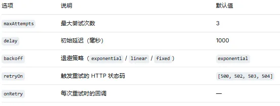 重试配置选项: