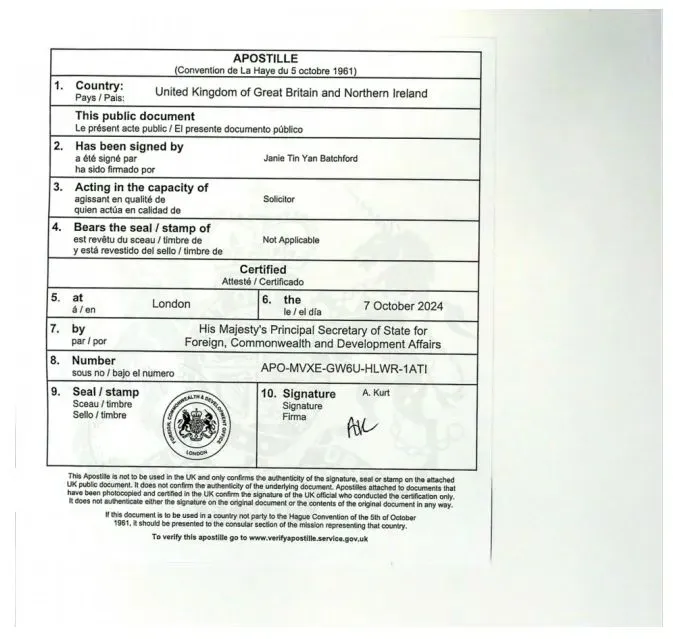 本证书可申请英国外交部海牙公约认证(Apostille)。