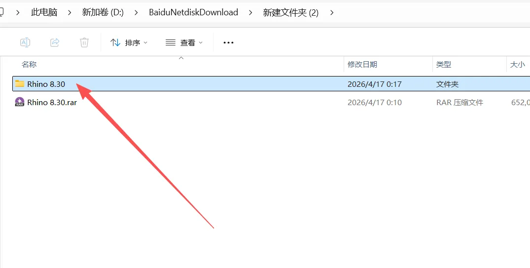 1、右击【Rhino 8.30】压缩包,选择【解压到Rhino 8.30】文件夹。