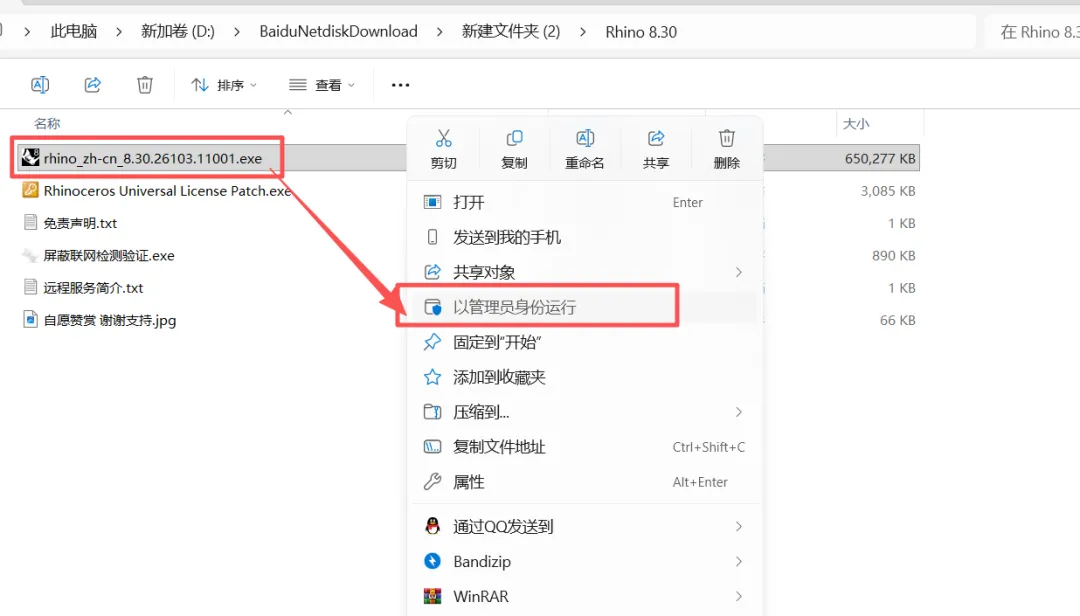 2、进入【Rhino 8.30】文件夹,以管理员身份运行【rhino_zh-cn_8.30.26103.11001】。
