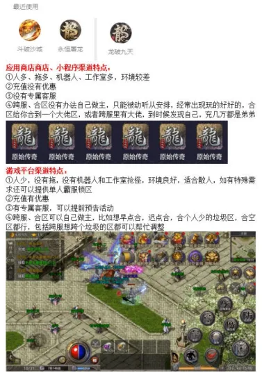 最近很多玩家来咨询小编小程序龙破九天,就是原始传奇的又一个新端口,小程序玩自然没折扣,大家玩之前一定要多问一句有没有折扣,没有就不要去了,小程序都不用问了,不会有折扣,龙破九天的玩家要想有折扣得放弃现在的号,重新到原始传奇玩。
