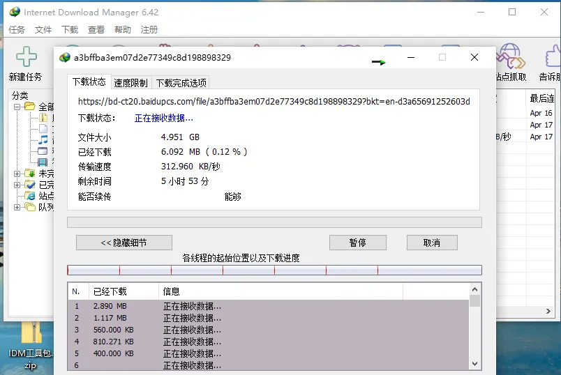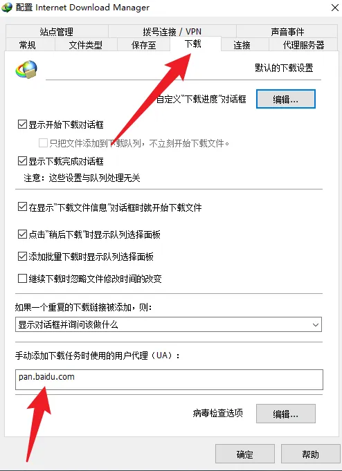 使用脚本前提需要下载篡改猴插件,在插件中添加脚本才能够正常获取直链。这里我已经将用到的脚本、插件统一打包到网盘了,各位一键下载即可。资源获取方式很简单,在公众号回复:【网盘直链获取】即可。安装好后,你能在插件找到篡改猴,打开篡改猴后面的更多,找到管理扩展程序。这里注意一定要打开允许运行用户脚本,要不然脚本根本不会生效。接着点开添加新脚本,将脚本文件拖动到打开的窗口,立刻就会显示安装成功,确保能够正常启用它之后,就能够在网页端看到网盘资源页面上找到下载助手。勾选一个要下载的资源,使用小助手你就能够获取到资源的直链地址了。这里提供了多种下载方式,选自己想要的就行。我以IDM下载器为例进行文件下载,想要成功下载某度超过500M以上的文件这里还需要将IDM的用户代理重新设置,也就是要和我这里一样。最后你就能发现,在新建任务时,将获取的直链粘贴进去就能够正常下载文件了。但经过实测,某度的限速之牛,连多线程也被服务器控总带宽。