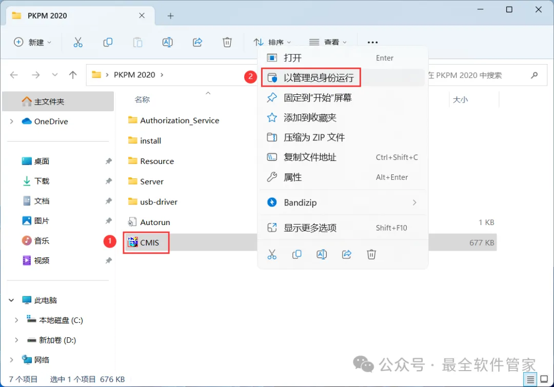 [不限速下载]:免费获取百度网盘不限速下载工具。公众号内回复:不限速[注意事项]:安装前请关闭网络、杀毒软件和防火墙,否则易安装失败。公众号内回复:1[解压软件]:小编用的解压软件是Bandizip,获取Bandizip软件安装包。公众号内回复:21、下载PKPM 2020软件安装包到电脑上,右键选择【解压到PKPM 2020\】3、找到【CMIS】应用程序,右键选择【以管理员身份运行】它8、软件默认安装在C盘,可自定义更改软件安装位置,这里小编选择安装在D盘;点击【下一步】 14、回到桌面,右键桌面上的【PKPM 2020软件图标】,点击【打开】 16、以上就是PKPM 2020软件安装的全过程,要是对你有帮助的话,请为小编点个赞! 免责声明:软件资源均来源于网络,仅供用户交流学习与研究使用,版权归属原版权方所有,版权争议与本公众号无关,用户本人下载后不能用作商业或非法用途,否则后果均由用户承担责任;如果您访问和下载此文件,表示您同意只将此软件用于参考、学习而非其他用途,否则一切后果请您自行承担,请于下载后24小时内删除,不允许用于商业用途,否则法律问题自行承担。如果您喜欢该软件,请支持正版软件,购买注册,得到更好的正版服务。
