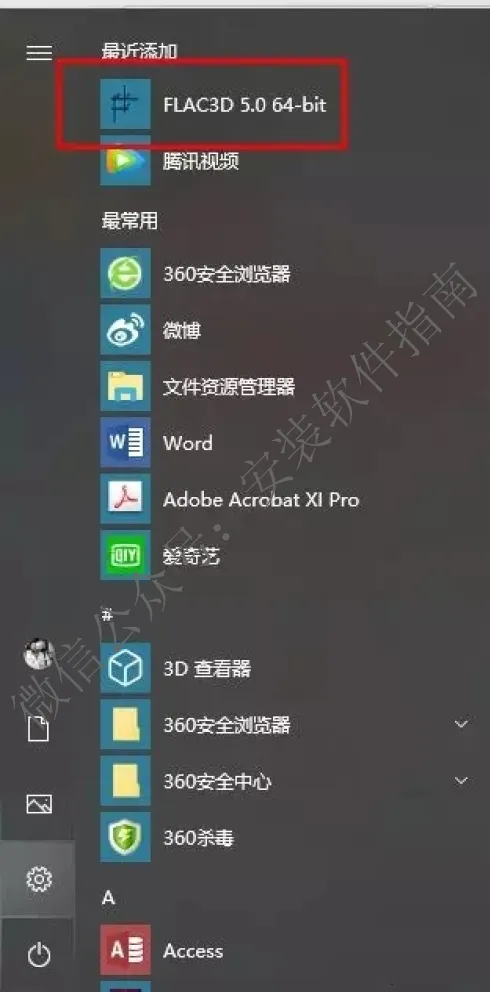 15、打开开始菜单,查看Flac3d5.0破解情况;