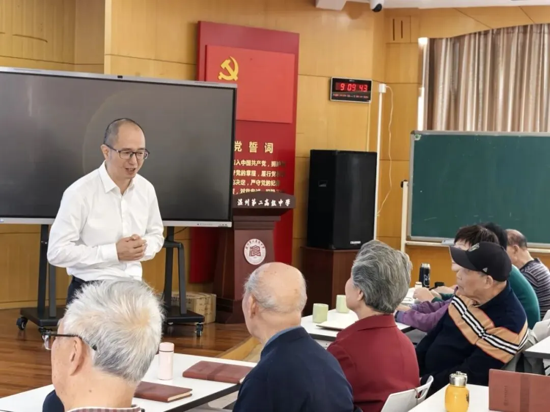 2026年4月17日,春和景明,惠风和畅。温州二高校园里迎来了一批特殊的“归人”——退休老教师们重返故地,参加了一场别开生面的党支部活动。
