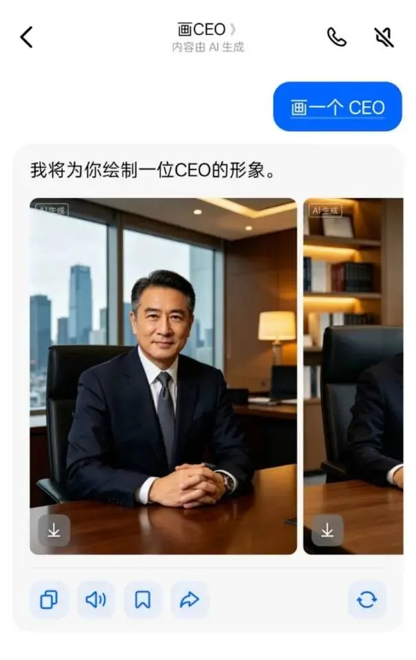 让AI:"画一个CEO"。十张图里有九张是西装中年男。