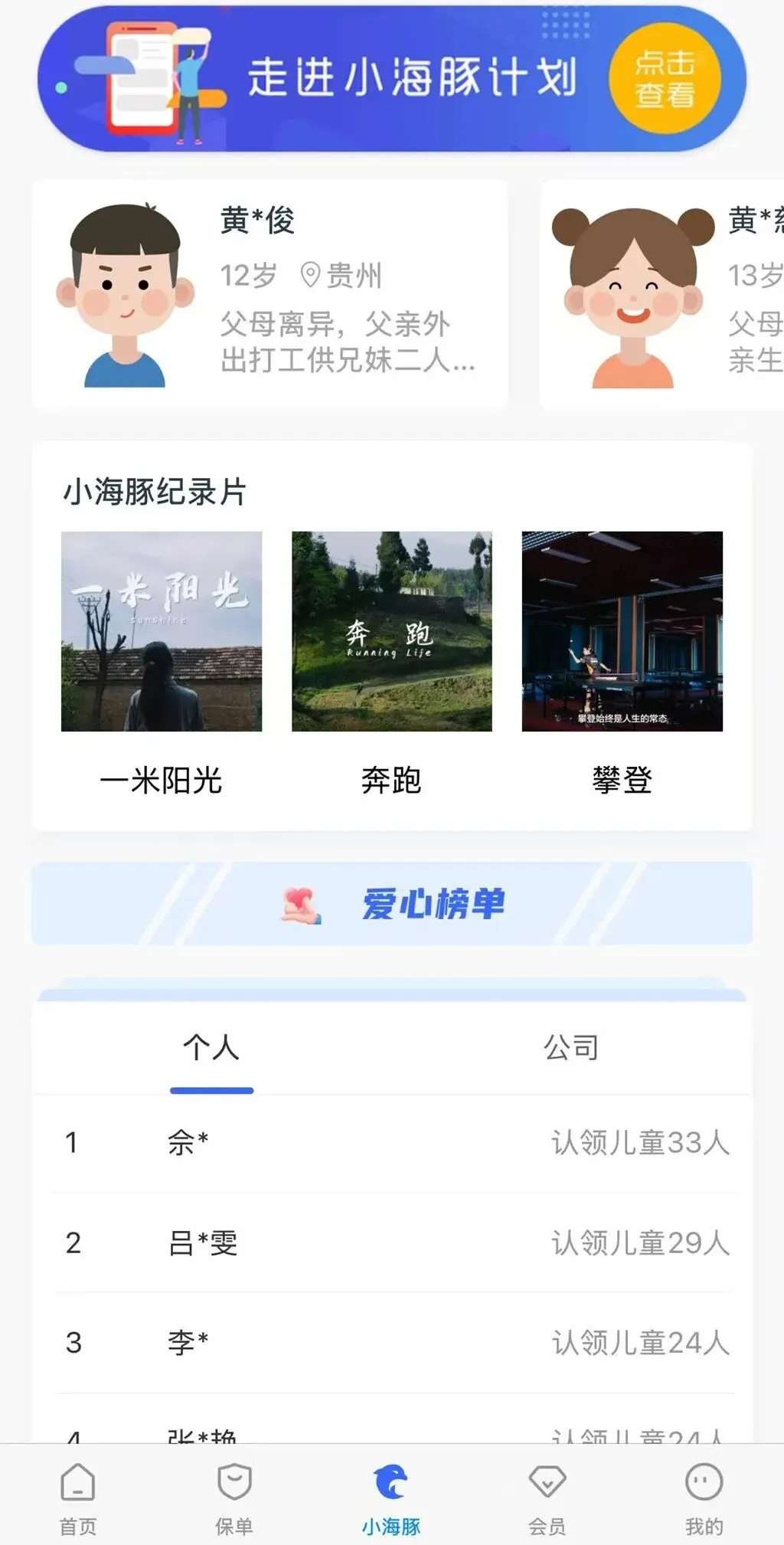 用户只需打开E动生命APP,进入“小海豚计划”一对一帮扶入口,即可清晰查看受助儿童的基本情况与成长需求,一键成为困境儿童的专属守护者。