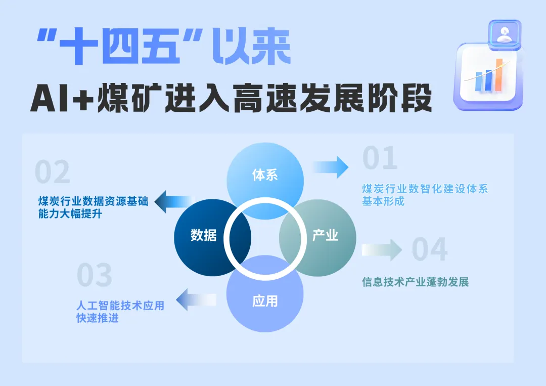 “十四五”以来,煤炭行业两化融合和数字化转型进入高速发展阶段,数智化已成为行业高质量发展的核心抓手。一是煤炭行业数智化建设体系基本形成。国家及地方智能化政策、制度与标准持续完善,多项矿山大数据、井下5G、数据源编码等国家及行业标准相继实施。二是数据资源基础能力大幅提升。新一代通信、数据中心、工业互联网等基础支撑持续强化,5家煤炭行业单位入选国家数据局高质量数据集先行先试名单,华阳新材料集团实现煤炭企业首单数据资产合规登记。三是人工智能技术应用快速推进。AI技术广泛覆盖生产、安全、运维、管理等场景;行业国家级人工智能应用中试基地获批建设,已形成一批高质量数据集及高价值应用场景;露天矿无人驾驶技术应用快速推广据不完全统计,截至2025年末,在运无人驾驶矿卡数量突破4000台,基本实现年均倍速增长。四是信息技术产业蓬勃发展。中国煤炭工业协会监测的50家左右煤炭领域信息技术服务商数据,“十四五”累计营收规模达到千亿元,年均增速达到16%;研发投入年均增速达到18%;围绕煤炭领域人工智能、具身智能、智能体等新产业新赛道公司布局活跃。