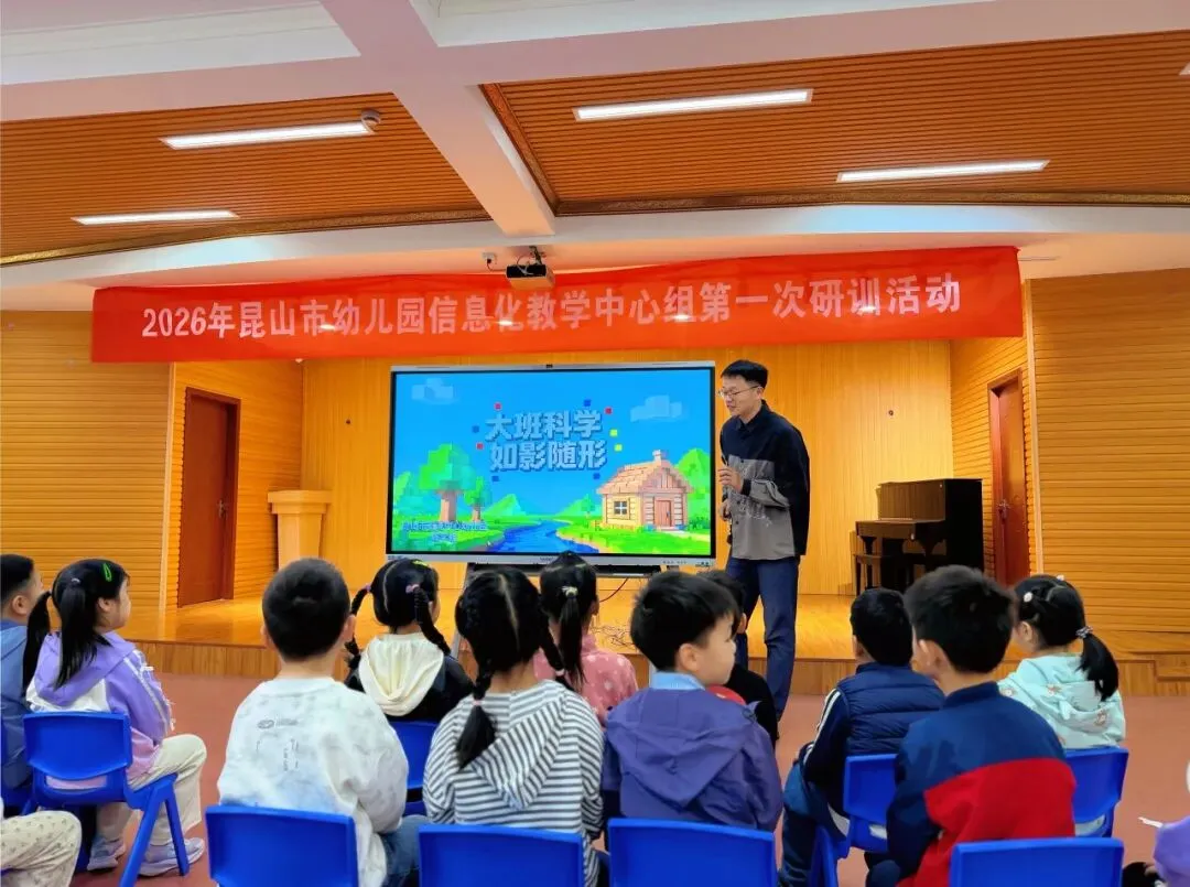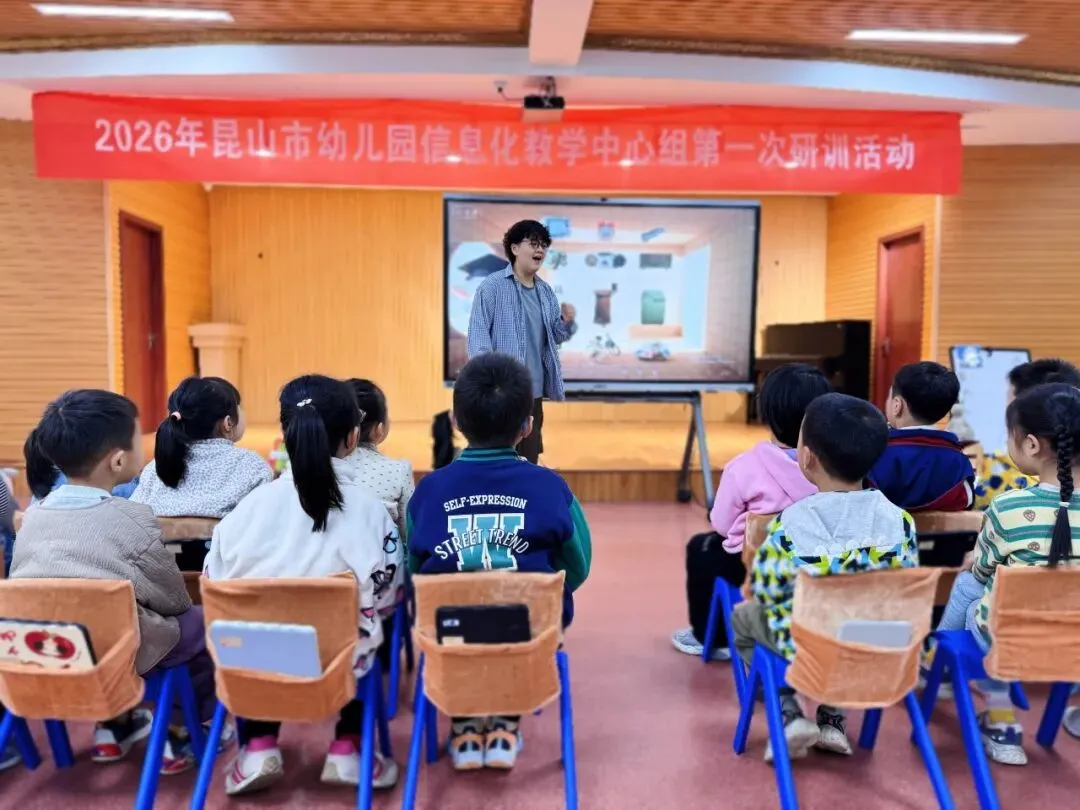 为进一步加快AI赋能教育教学实践探索, 努力提升青年教师数字素养与能力水平,4月17日,昆山市幼儿园信息化教学中心组第一次专题研训活动在昆山高新区新华舍幼儿园举行。本次活动聚焦人工智能与学前教育深度融合,通过课堂展示、经验分享、研讨交流等形式,共同探索智能时代幼儿学习的新样态。