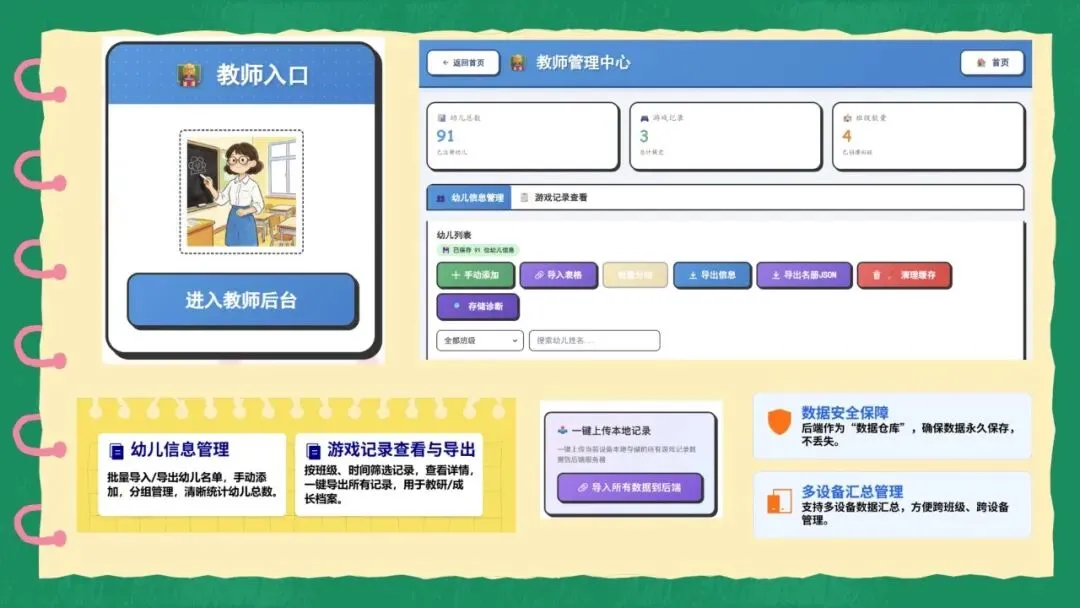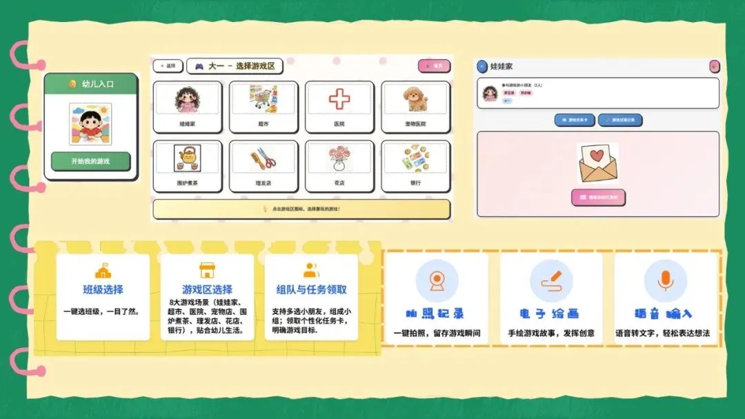 「快乐机幼」角色游戏小助手依托响指平台开发,专为幼儿园角色游戏设计。幼儿端沉浸式游戏,含任务卡与多元记录;教师端高效管理班级、上传查看数据,双向打通形成闭环,解决观察、记录、管理难题。以AI+游戏实现三大创新,助力幼儿快乐成长。