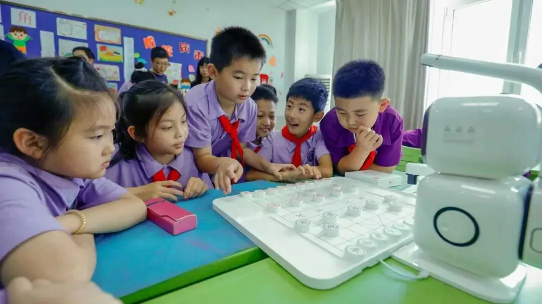 城阳区国城小学学生与智能机器人对弈