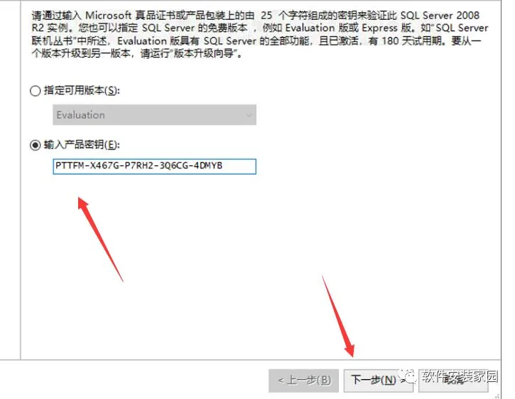 第五步:点击输入秘钥下一步 输入PTTFM-X467G-P7RH2-3Q6CG-4DMYB