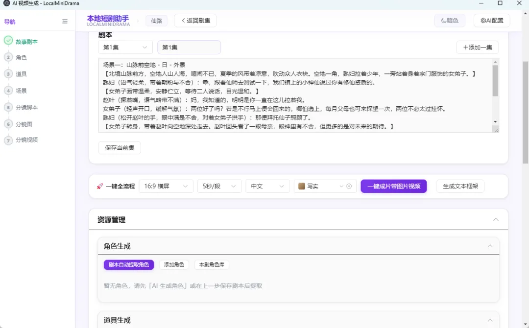 市面上 AI 短剧工具不少,但真正能本地离线运行、开箱即用、素材不上云的几乎没有。本项目用纯 JavaScript 从零搭建,接入你自己的 AI API,打开即可生成完整 AI 短剧。