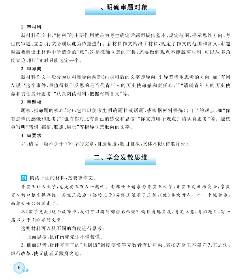 “新材料作文写作”模块,主要通过分析考纲、历年真题以及大量的例题,技巧解析,讲解如何理解材料、准确立意和有效扣题,让同学们明白高考的作文考生么、评分标准是什么、从材料里面正确解析出作文题目和作文方向,开始写作的第一步。