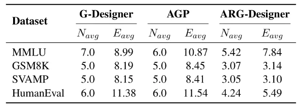 该表格2统计了三类拓扑框架在不同数据集上生成拓扑的平均节点数(Navg)与平均边数(Eavg),量化了不同场景下拓扑的复杂度差异。