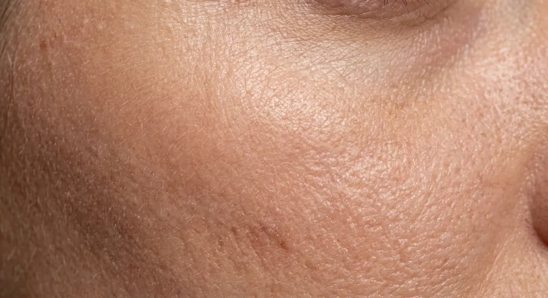 超写实皮肤,自然肤色,细腻毛孔,皮肤纹理清晰,皮肤层次丰富