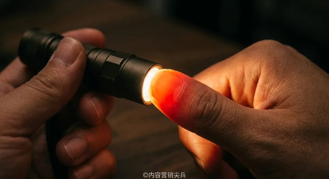 用人话讲SSS:拿手电筒照手指尖——边缘透出的红润光,就是次表面散射。光钻进皮肤再弹出来,才有温润通透感。塑料玩具光照不透,所以只有死白高光——就像手电照矿泉水瓶,只反光不透光。
