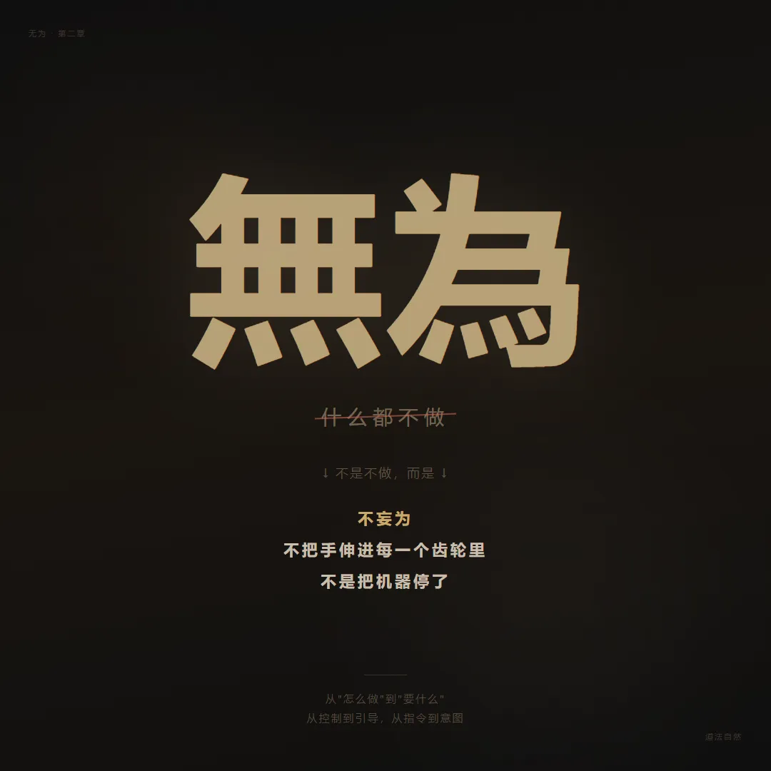 无为是不妄为。 是你不把手伸进每一个齿轮里,不是你把机器停了。