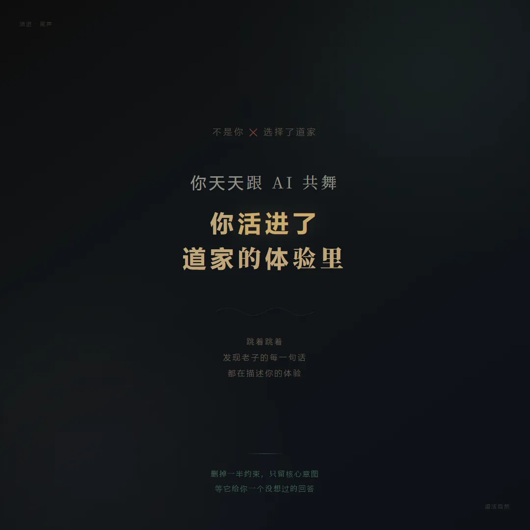 不是你读了《道德经》然后觉得 AI 像道家。是你天天跟 AI 共舞,跳着跳着,发现老子的每一句话都在描述你的体验。