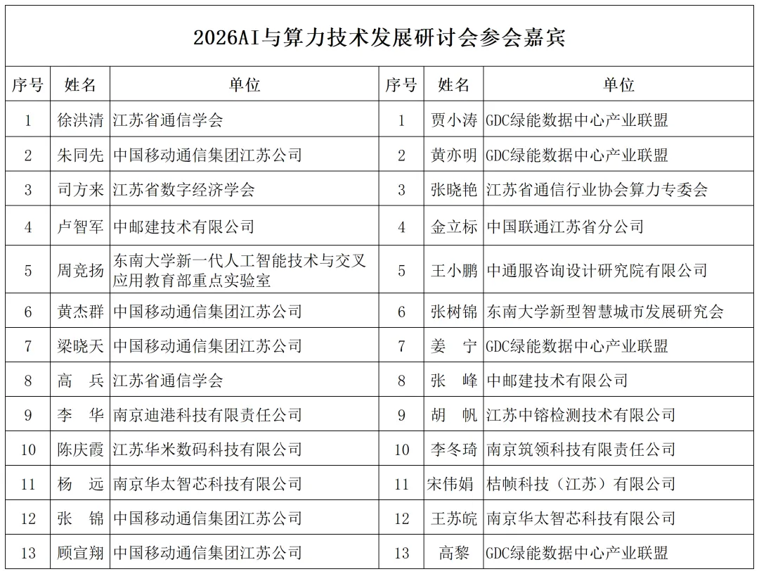 2026年4月17日,由GDC绿能数据中心产业联盟联合江苏省通信学会算力与人工智能专业委员会共同主办,中邮建技术有限公司承办的“2026AI与算力技术发展研讨会”成功召开。本次活动汇聚了东南大学、中国电信、中国移动、中国联通、中通服设计院等单位专家与AI与算力相关企业代表。会议围绕人工智能前沿技术发展趋势、算力基础设施建设、绿色低碳算力标准、AI终端生态标准及运营商在政企与民生场景中的AI应用实践展开交流,与会嘉宾就行业痛点、技术落地路径及生态协同发展展开深入探讨,为推动区域算力产业高质量发展、赋能数字经济建设凝聚了广泛共识。