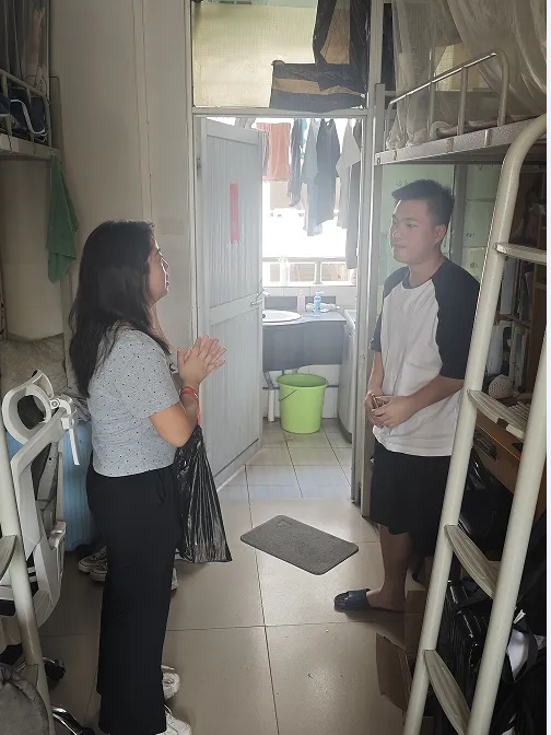 检查过程中,胡垂立副院长与辅导员们逐栋、逐间深入学生宿舍,采取 “看、查、问、导” 相结合的方式开展工作: