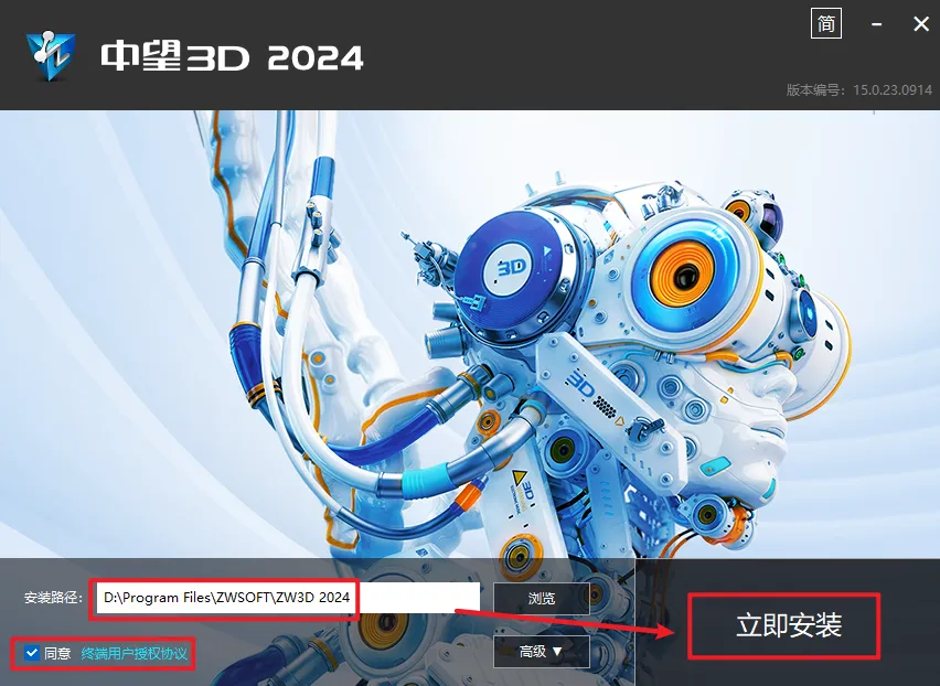 3.选择软件安装路径,安装路径不要出现中文,勾选“同意...”,点击”立即安装”
