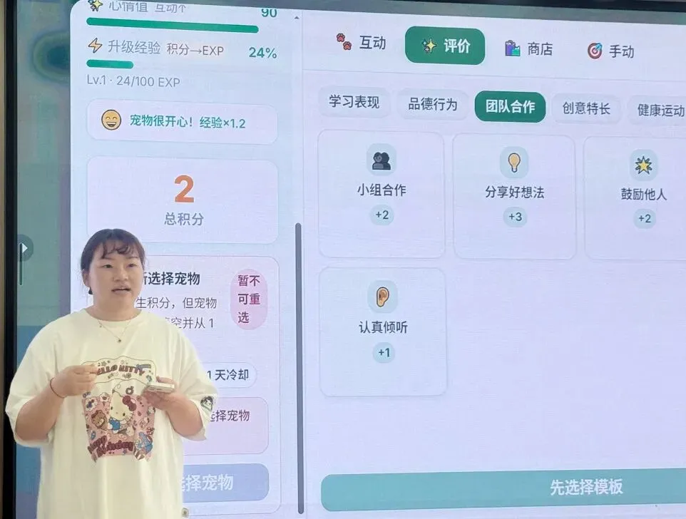 杜燕娟老师分享了班级电子宠物孵化的实践经验,将幼儿日常表现与评价体系相结合,依托希沃白板的趣味互动功能开展活动。孩子们通过日常打卡、互动交流与同伴协作完成孵化任务,在坚持照料萌宠的过程中,学会责任担当与分享合作,让班级生活更添童趣与温暖。