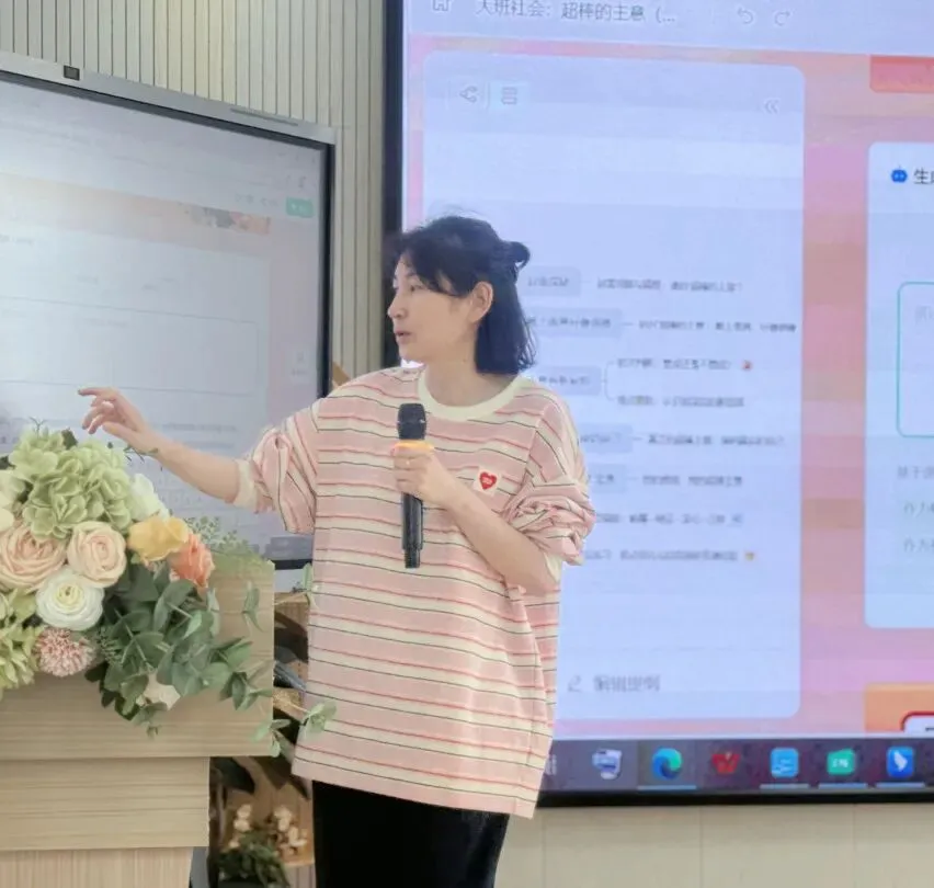 教师们结合自身日常保教工作的实践经验,立足幼儿年龄特点与课堂教学需求,围绕希沃白板中的 AI 功能展开深入交流,分享了在互动教学、趣味课件设计、游戏化活动组织等方面的创新应用与实践探索成果。