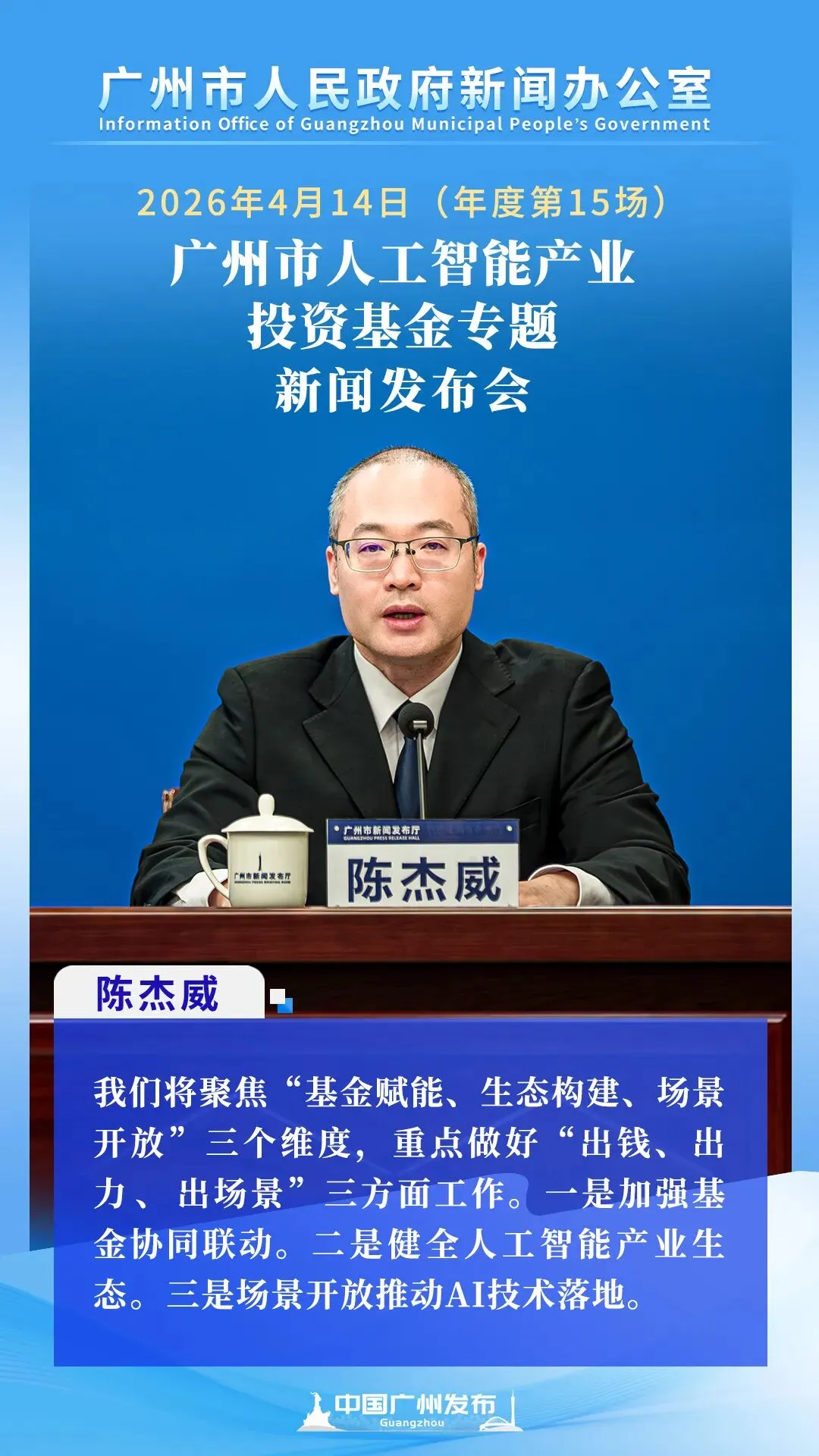 4月14日,广州市人民政府新闻办公室召开人工智能产业投资基金专题新闻发布会。会上正式宣布,广州组建人工智能产业投资基金,总规模200亿元,采用“母基金+直投基金”架构,首期计划设立3只直投基金。该基金将通过“政府引导、市场运作”模式,以“赛马机制”实现优胜劣汰,旨在精准赋能人工智能产业关键环节,支持“投早、投小、投长期、投硬科技”。