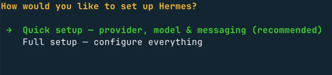 vi ~/.hermes/.env 即可重新进入配置页面。
